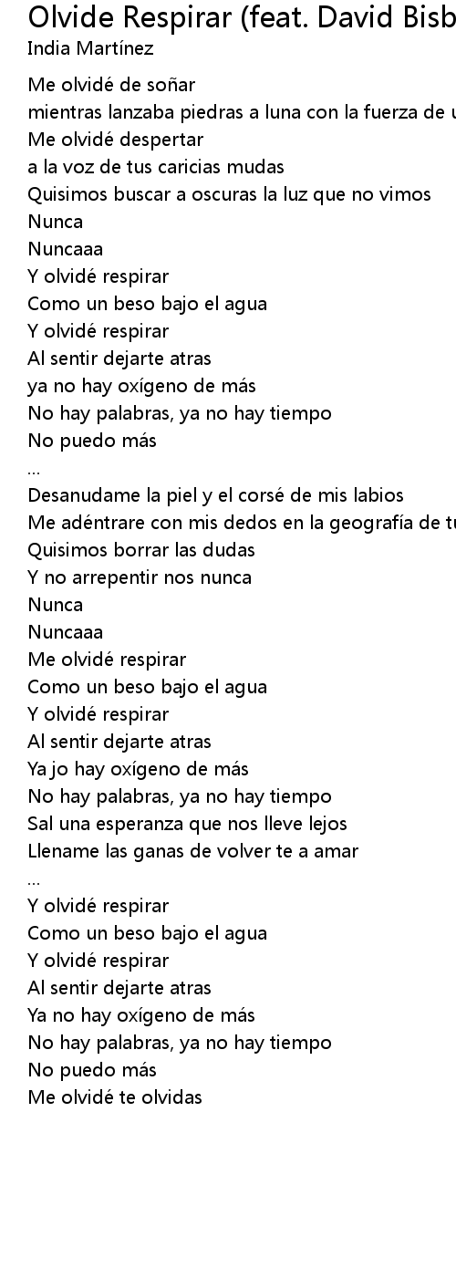 | Song | Olvide Respirar (feat. David Bisbal) |