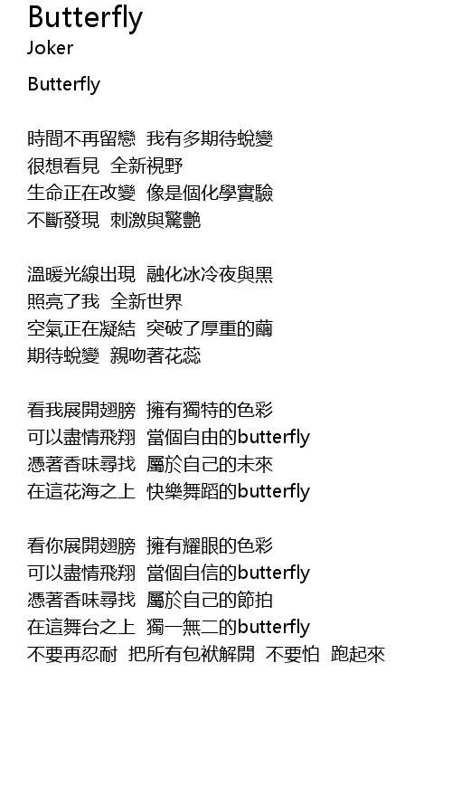 | 可以盡情飛翔 當個自信的butterfly | |
