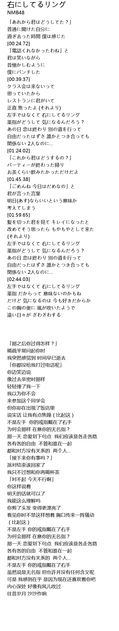| [00:54.54] | 左手ではなくて 右にしてるリング |