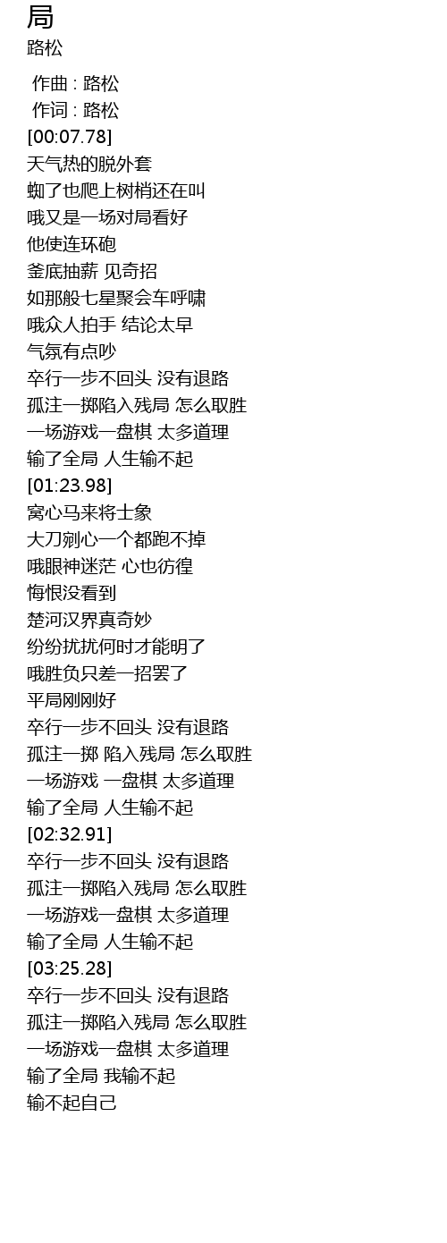| [03:17.63] | 输了全局 人生输不起 |