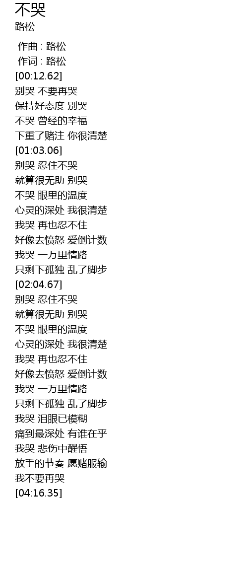 | [01:04.62] | 别哭 忍住不哭 |