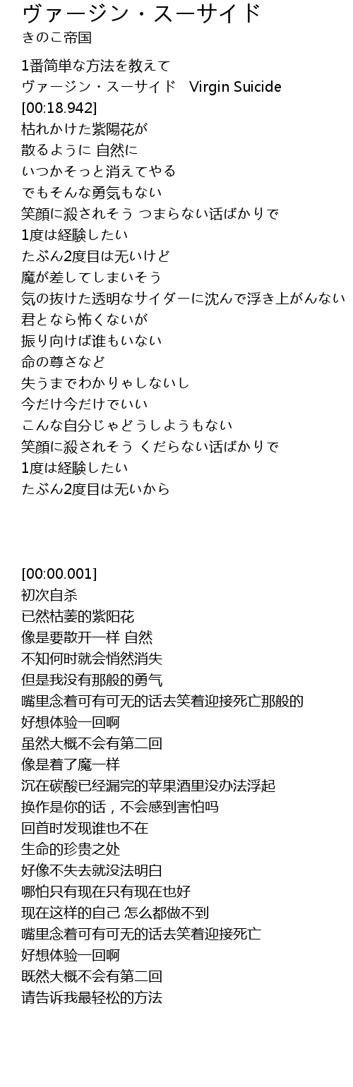 | [00:00.001] | ヴァージン・スーサイド Virgin Suicide |