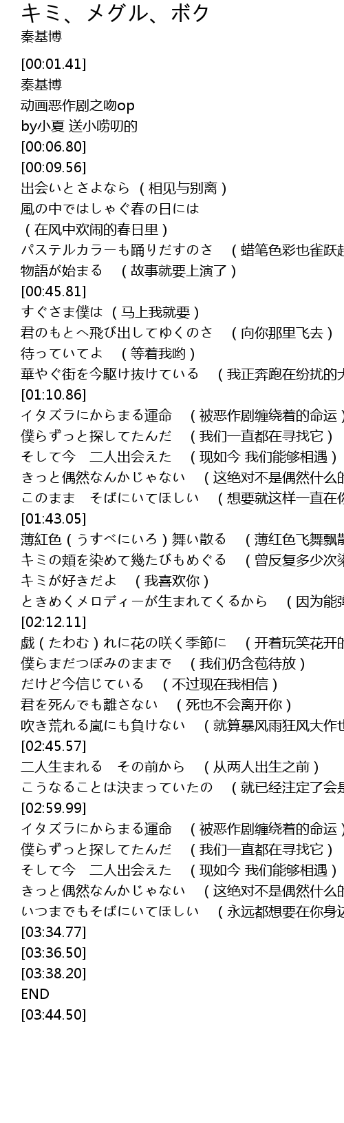 | [02:03.57] | キミが好きだよ (我喜欢你) |