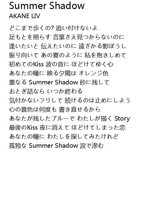 | 振り向いて あの夏のように 私を抱きしめて | |