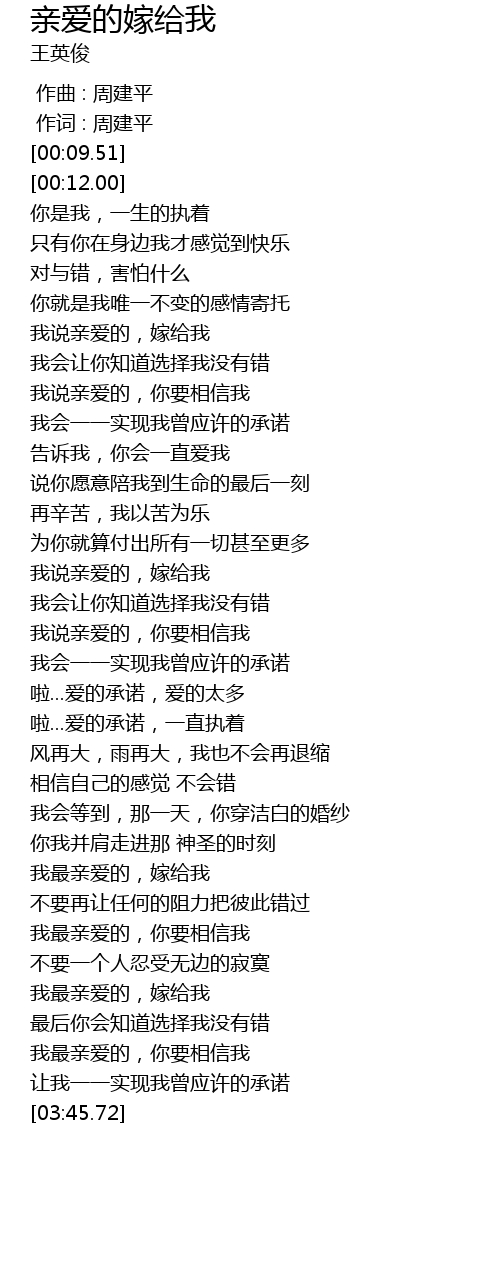 | [00:39.36] | 我说亲爱的,嫁给我 |