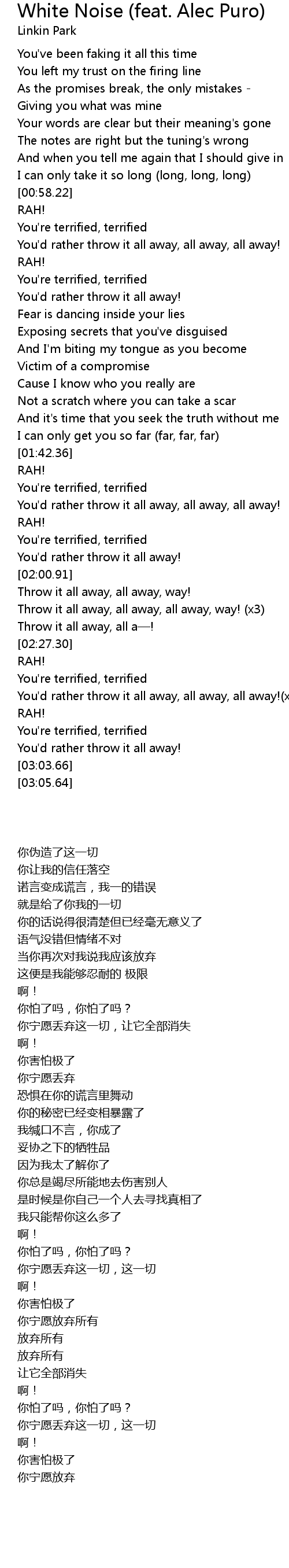 | [02:42.58] | You'd rather throw it all away, all away, all away!(x3) |