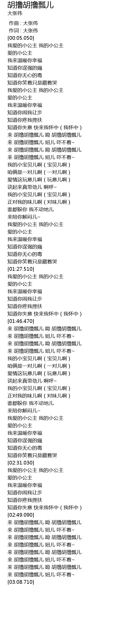 | [02:50.280] | 来 胡撸胡撸瓢儿 呦 胡撸胡撸瓢儿 |