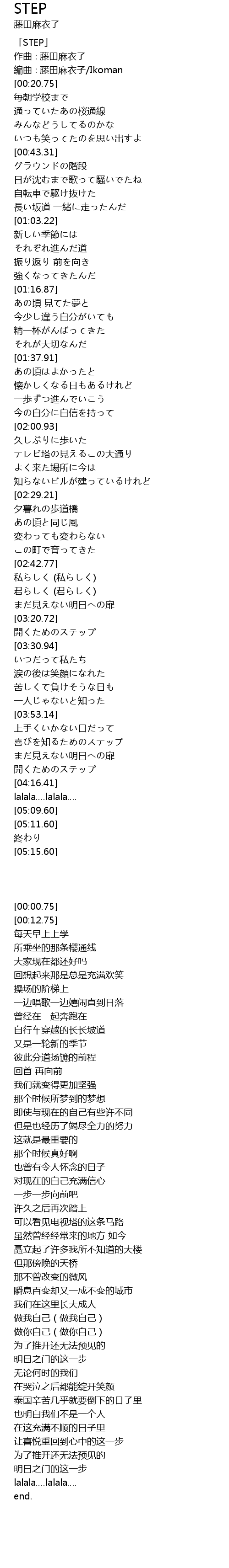 | [00:00.75] | 「STEP」 |