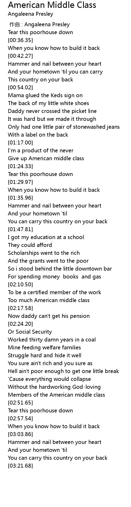 | [02:47.23] | Members of the American middle class |