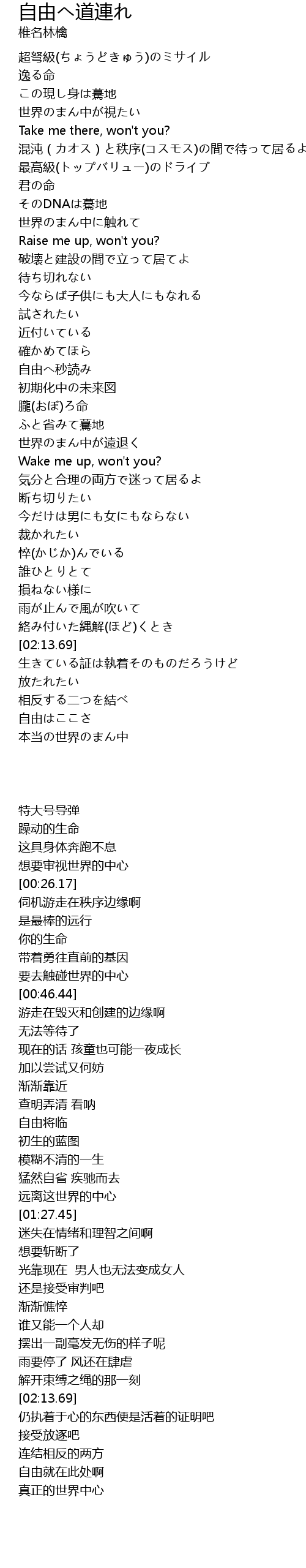 | [02:43.55] | 放たれたい |