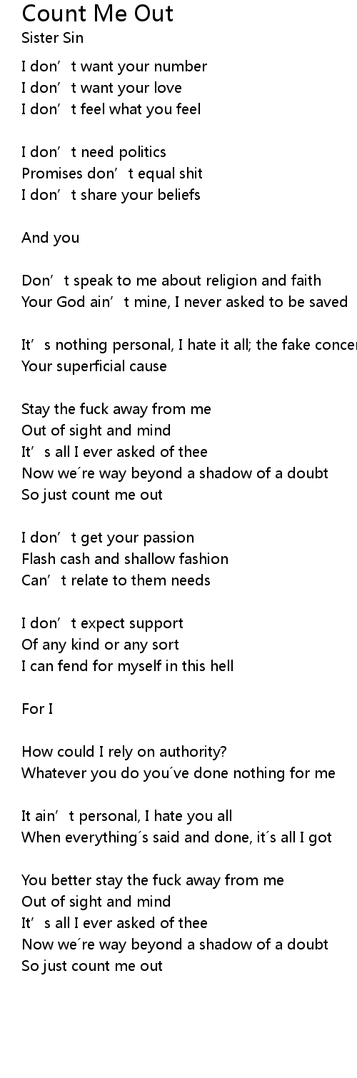 | So just count me out |