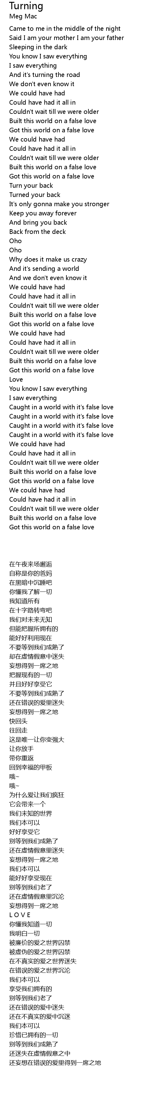 Caught in a world with it's false love |