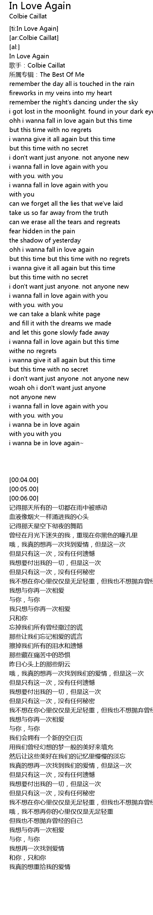 | [00:06.00] | 所属专辑:The Best Of Me |
