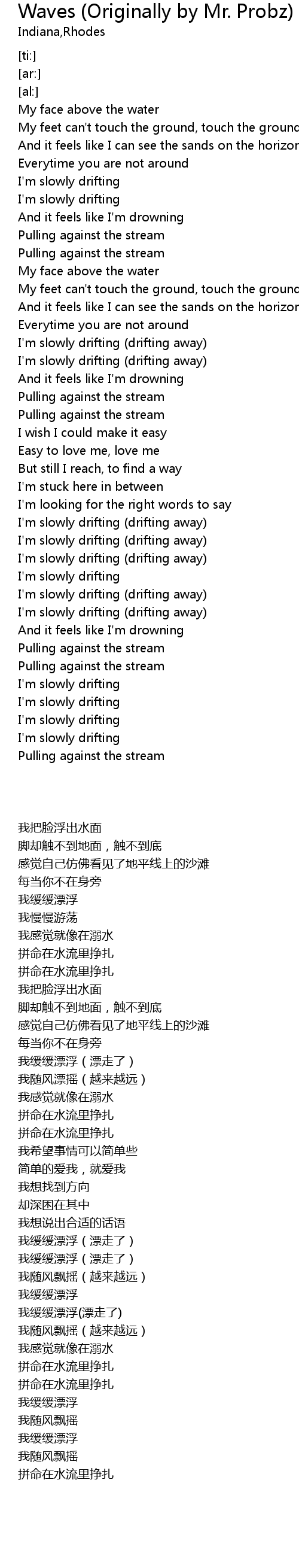 | [00:51.00] | My face above the water |