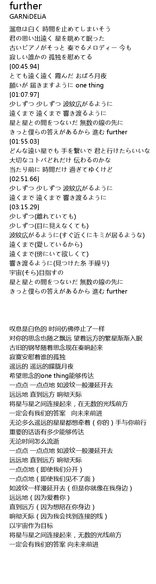| [03:49.71] | きっと僕らの答えがあるから 進む further |