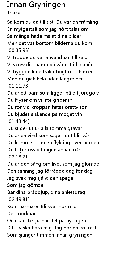 | [03:16.35] | Som sjunger timmen innan gryningen |