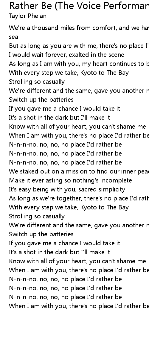 But as long as you are with me, there's no place I'd rather be |