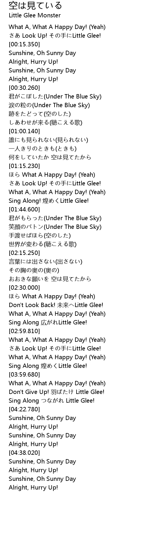 | [03:38.350] | Look Up! shǒu Little Glee! |