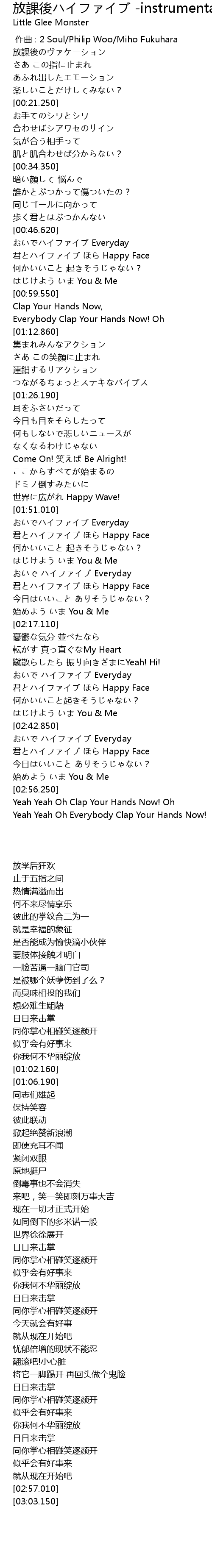 | [00:50.040] | 君とハイファイブ ほら Happy Face |
