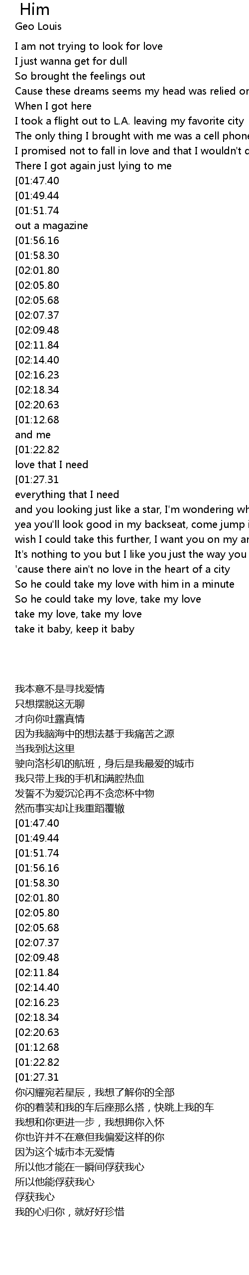 | [00:58.44][02:09.48] | I want him to be everything I need |