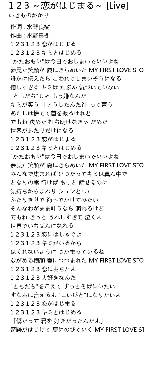 | [00:17.400] | 1 2 3 1 2 3 恋がはじまる |