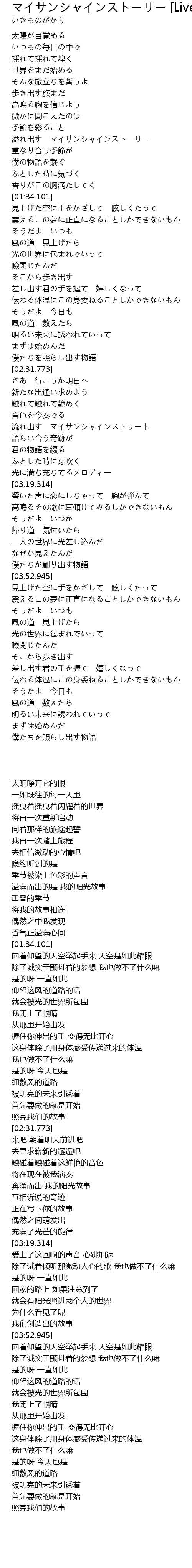 | [01:06.484] | 溢れ出す マイサンシャインストーリー |
