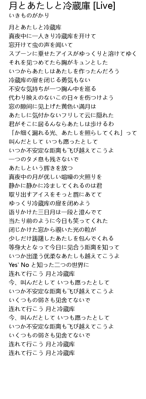 | Song | 月とあたしと冷蔵庫 [Live] |