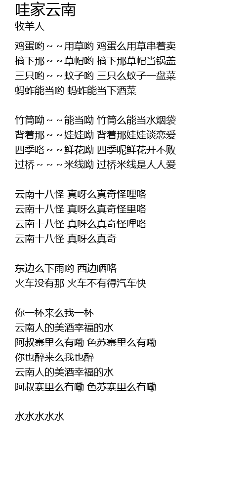 | yún nán shí bā guài zhēn ya me zhēn qí guài lǐ gē | |