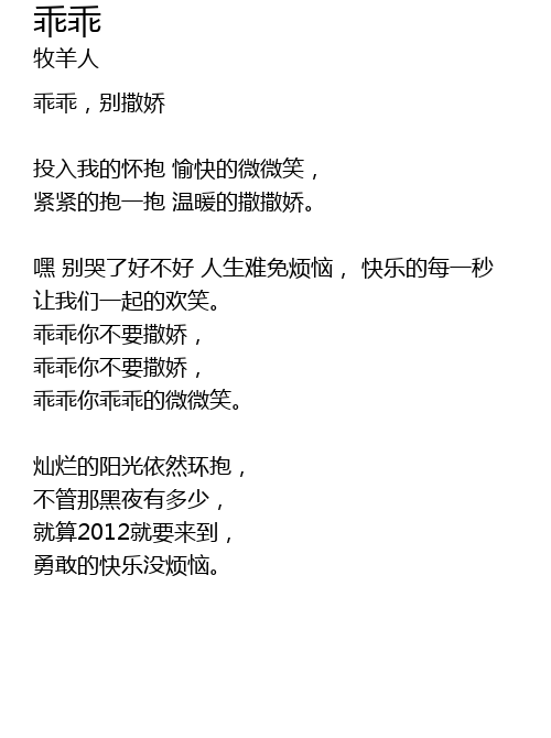 | 嘿 别哭了好不好 人生难免烦恼, 快乐的每一秒 让我们一起的欢笑。 | |