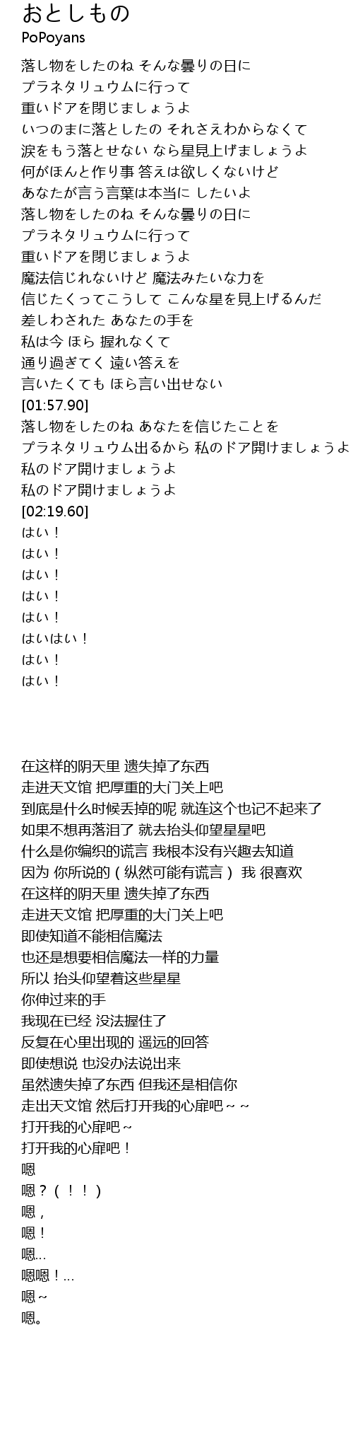 | [02:05.25] | プラネタリュウム出るから 私のドア開けましょうよ |