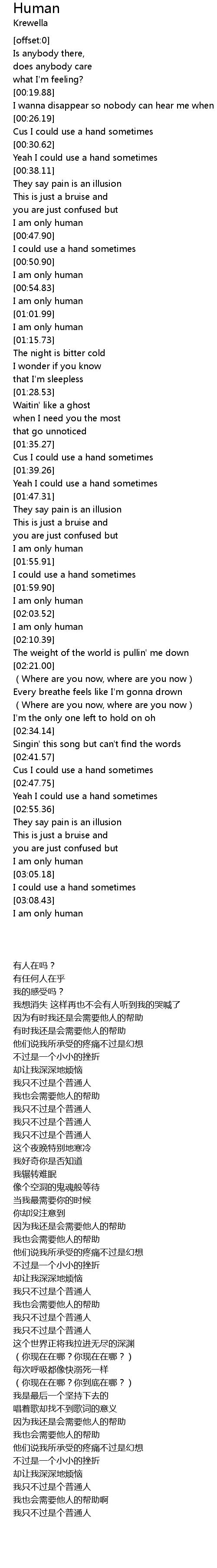 | [02:08.76] | I am only human |