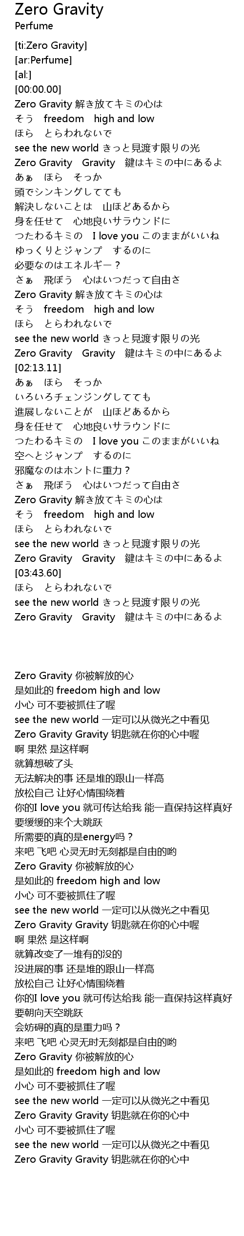 | [03:36.15] | Zero Gravity Gravity jian zhong |