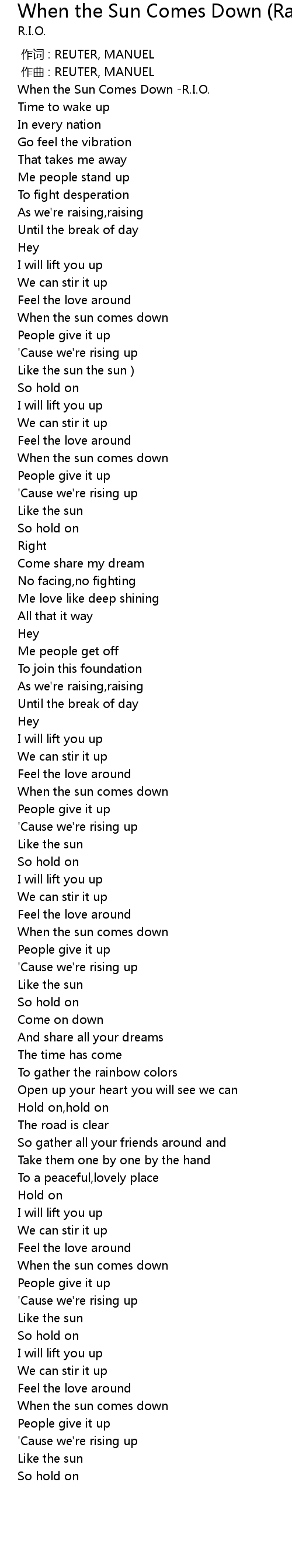 | [00:02.151] | When the Sun Comes Down R. I. O. |