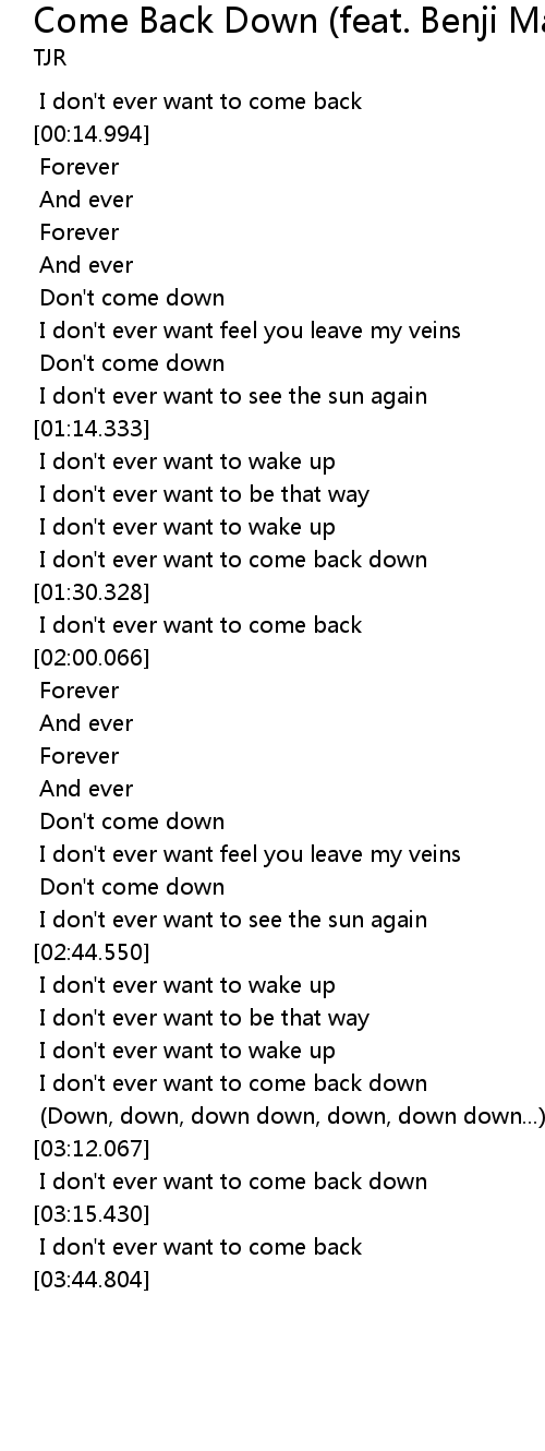 Song Come Back Down (feat. Benji Madden)