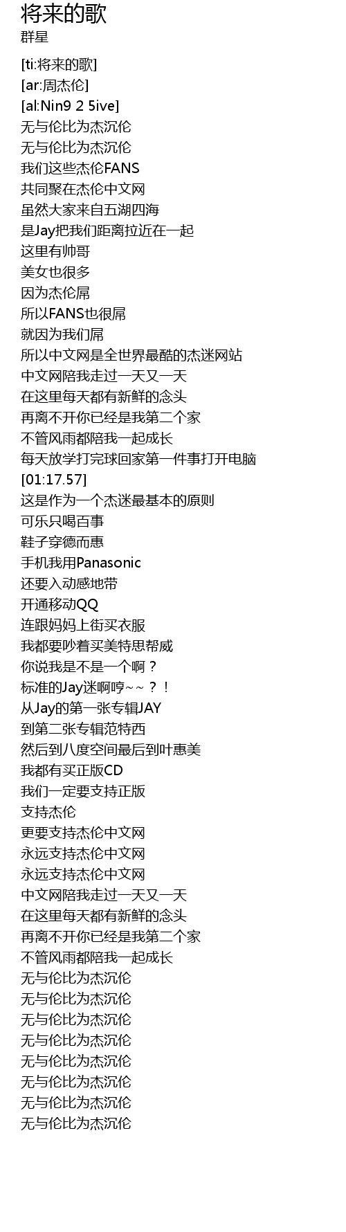 | [01:57.11] | 更要支持杰伦中文网 |