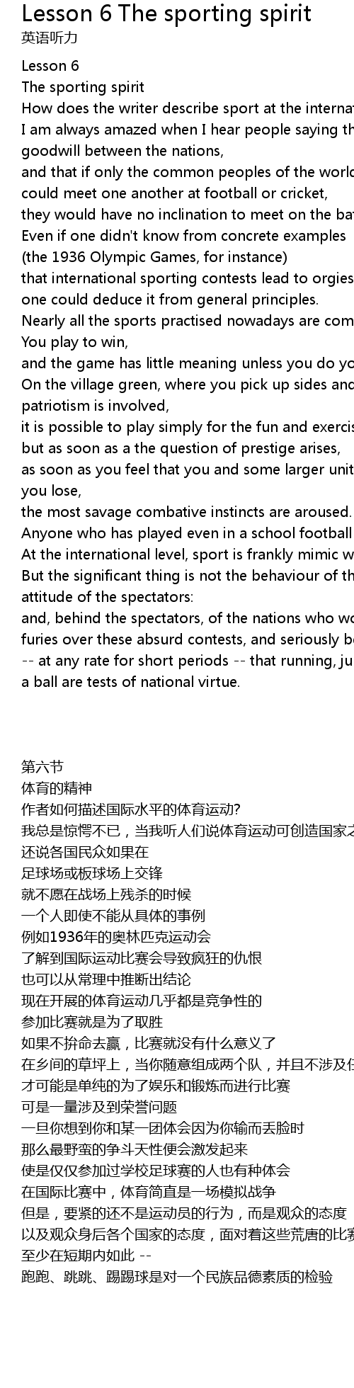 that international sporting contests lead to orgies of hatred, |