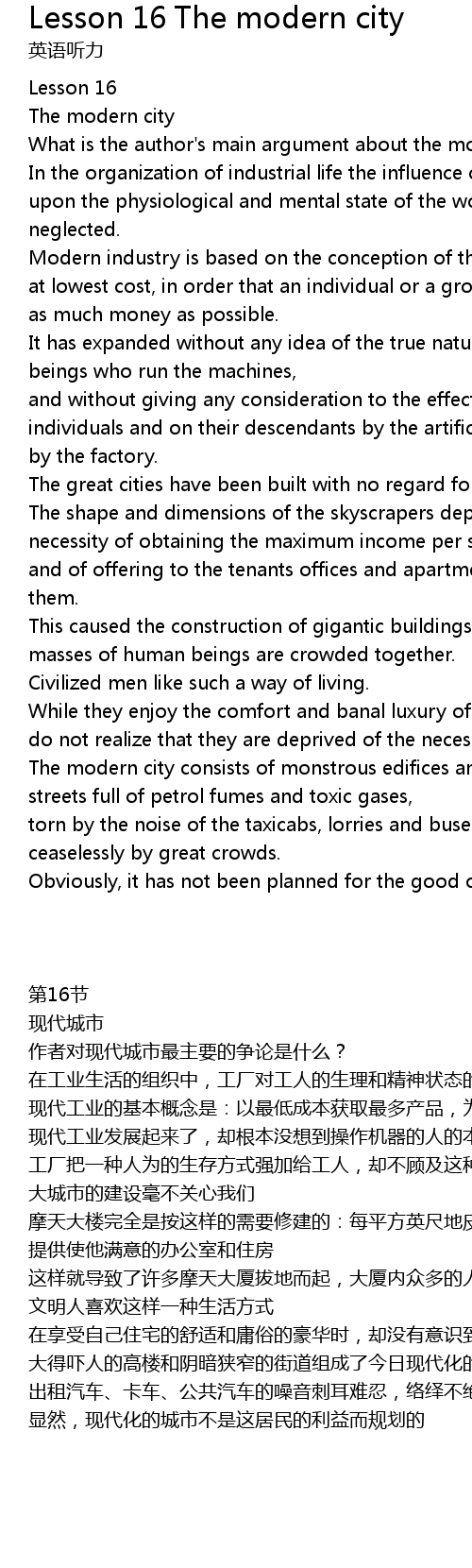 The modern city consists of monstrous edifices and of dark, narrow streets full of petrol fumes and toxic gases, |