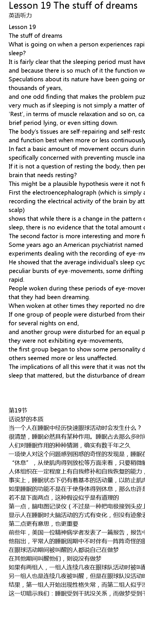 Some years ago an American psychiatrist named William Dement published experiments dealing with the recording of eye-movements during sleep. |