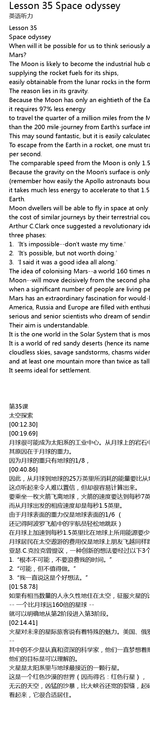 [01:58.78] The idea of colonising Mars--a world 160 times more distant than the Moon--will move decisively from the second phase to the third,