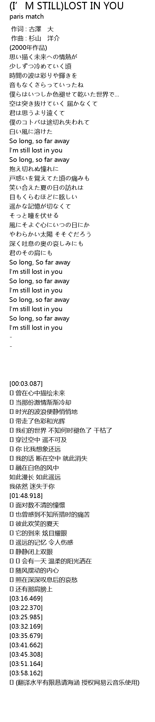 | [01:29.691] | 僕のコトバは途切れ失われて |