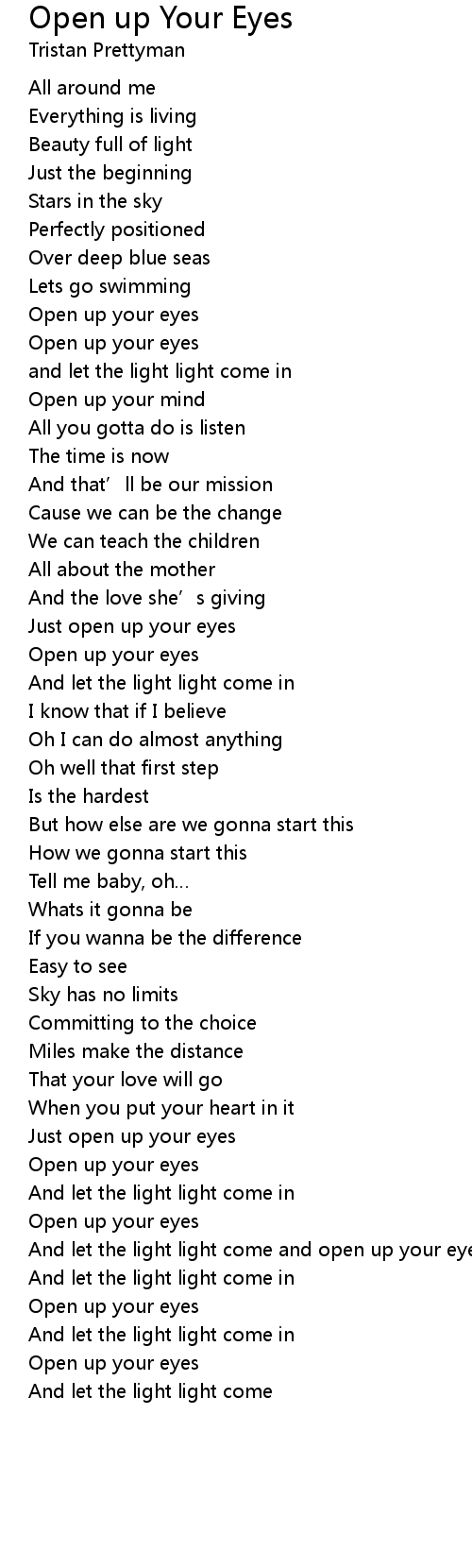 | And let the light light come and open up your eyes | |