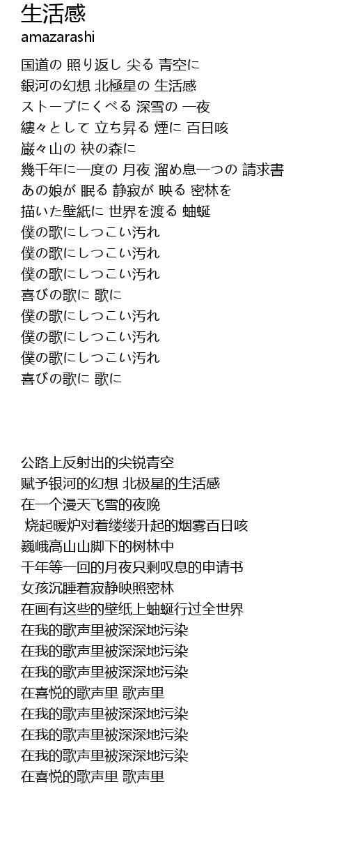 | [00:29.090] | 銀河の幻想 北極星の 生活感 |
