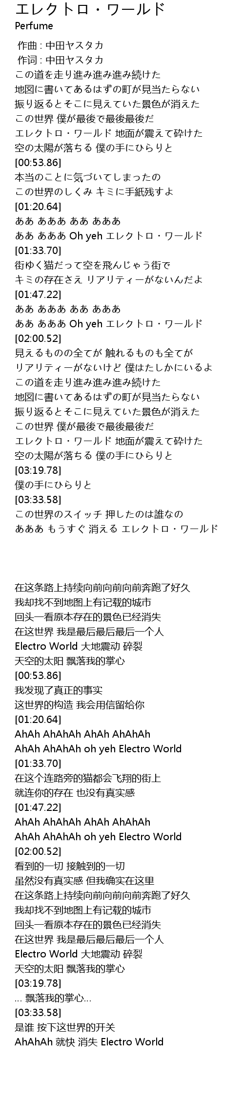 | [03:41.48] | あああ もうすぐ 消える エレクトロ・ワールド |
