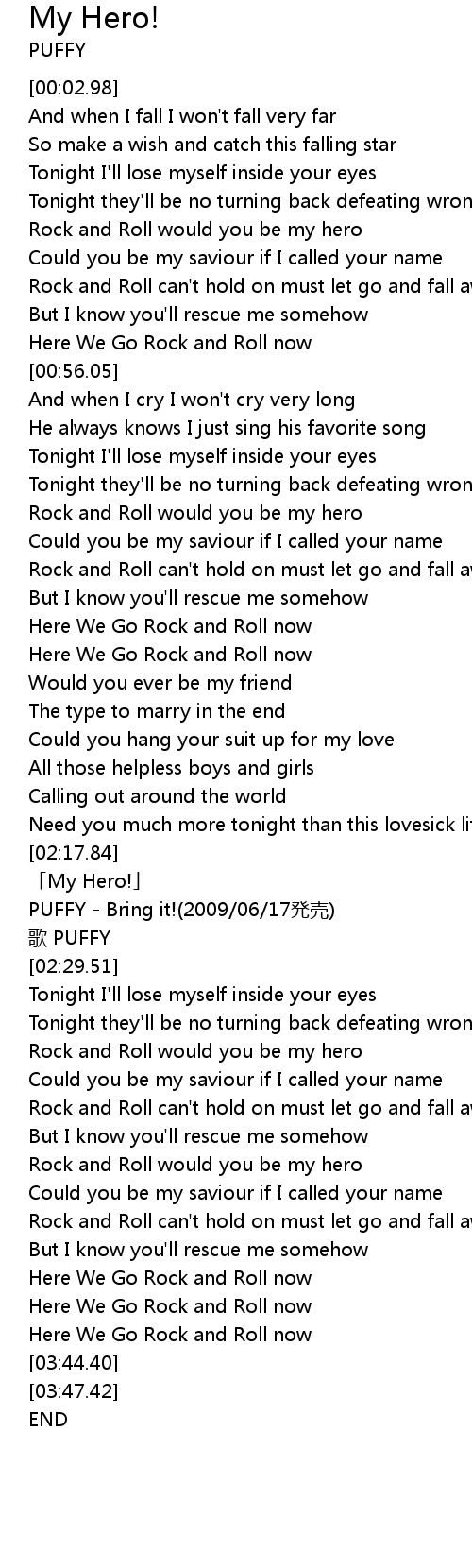 | [02:19.73] | My Hero! |