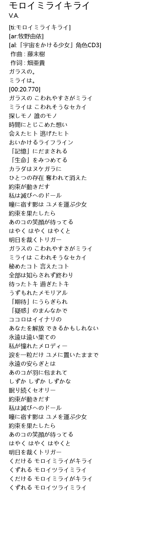 | [ti:モロイミライキライ] | |