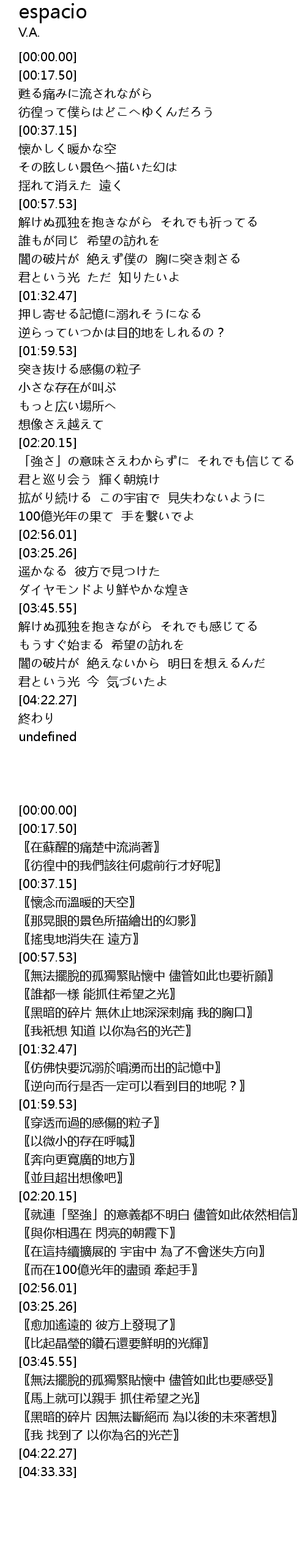 | [02:39.06] | 拡がり続ける この宇宙で 見失わないように |