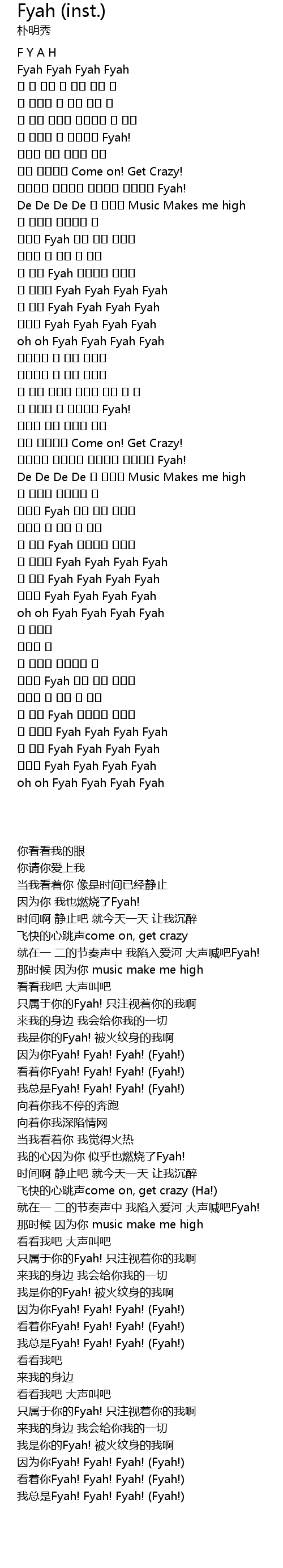 | [01:19.390] | 자꾸만 Fyah Fyah Fyah Fyah |