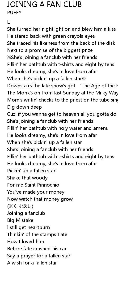 | Song | JOINING A FAN CLUB |