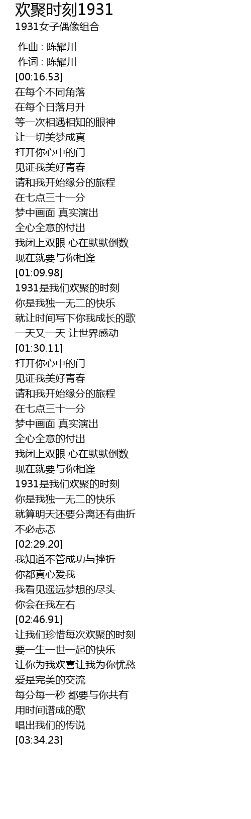 | [01:11.65] | 1931是我们欢聚的时刻 |