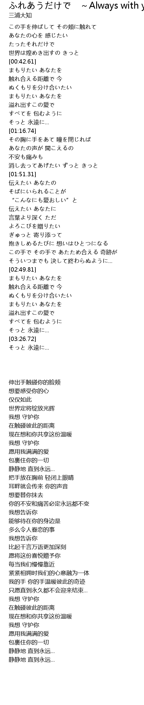 | [02:23.93] | 抱きしめるたびに 想いはひとつになる |